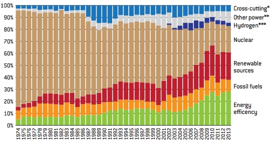 Se, infatti, nel 1974 la stragrande maggioranza dei soldi pubblici venivano destinati ad una sola tecnologia, il nucleare, oggi la situazione è molto più diversificata. E questo è un bene, perché puntare su una sola tecnologia, soprattutto quando si parla di energia, è molto rischioso come l’esperienza ha dimostrato.