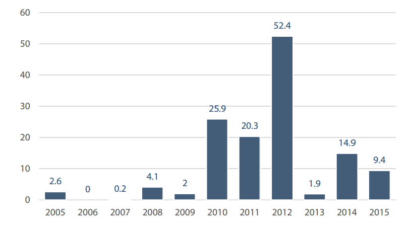 I dati si riferiscono al periodo 2010-2015
