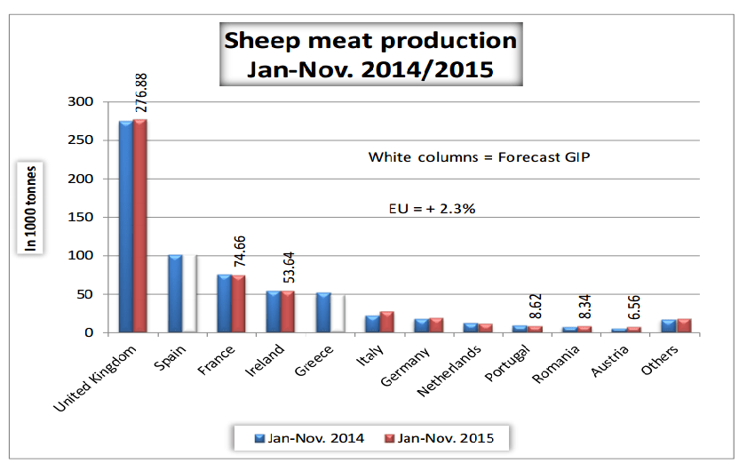 Quest’anno l’Italia è quinta in Europa per produzione di carne ovina; i Paesi produttori più importanti sono Regno Unito (soprattutto la Scozia), Spagna, Grecia e Francia. La produzione europea copre l’88% del fabbisogno interno con l’8% che viene esportato, soprattutto in Nordafrica. Circa 212 tonnellate di carne ovina vengono invece importate da Australia e Nuova Zelanda.
