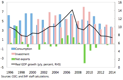 Nel 2014 il Pil è salito “solo” del 7,4%. Colpa soprattutto dell’export che non tira più
