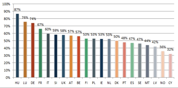 Le banche ungheresi sono le meno efficienti del continente: l’87% dei ricavi operativi viene speso per i finanziare i costi di struttura ma anche Lussemburgo, e Germania non fanno meglio: i loro costi sono oltre il 70% mentre la Francia è quarta in classifica con il 67%. In questa voce, quella dei costi operativi che spesso alimentano la burocrazia bancaria, rientrano molte voci ma la più importante è quella del costo del personale e più sono alti più è probabile che indichi anche una scarsa automazione e una bassa efficienza. E’ probabilmente per questo che in testa alla classifica europea c’è l’Ungheria. Ma in questa voce rientrano anche le spese amministrative, la vera burocrazia bancaria, gli ammortamenti su immobilizzazioni materiali e immateriali e degli altri proventi ed oneri di gestione.