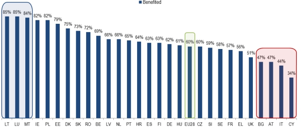 Gli italiani sono i penultimi in Europa a pensare che l’adesione all’Unione Europea (e all’euro) abbia portato un beneficio al proprio Paese. O, detta in un altro modo: l’Italia euroscettica è seconda nella classifica europea dell’euroscetticismo. Lo dice l’ultimo Eurobarometro, la ricerca periodica che l’Eurostat conduce tra i cittadini dei vari Paesi europei per sondare il loro atteggiamento verso l’Unione.