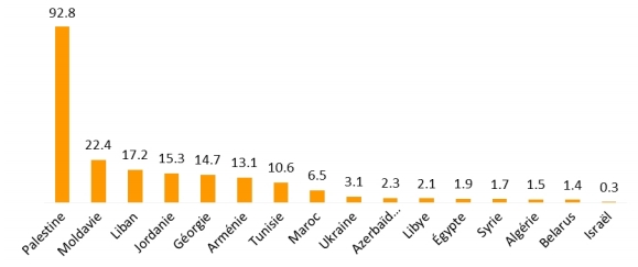 A ogni abitante della Palestina (i valori sono relativi al 2009) l’Europa ha versato 92,8 euro in 7 anni, quasi il quintuplo di quanto è arrivato ai moldavi, 22,4 euro.