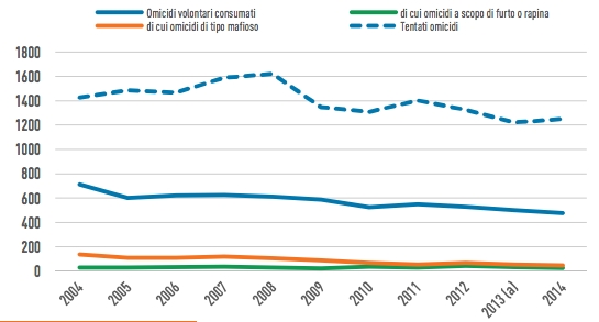 Per la prima volta dagli Anni ’90 gli omicidi in Italia sono scesi sotto quota 500 unità. Nel 2014 gli italiani uccisi sono stati 475 ed è il valore più basso in tutt’Europa.