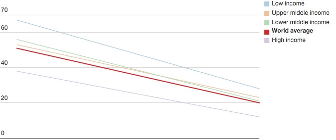 Man mano che diminuisce il reddito procapite aumenta anche la burocrazia e quindi le procedure necessarie: i Paesi a medio reddito procapite necessitano di 21 giorni mentre nei Paesi più poveri i giorni diventano addirittura 28.