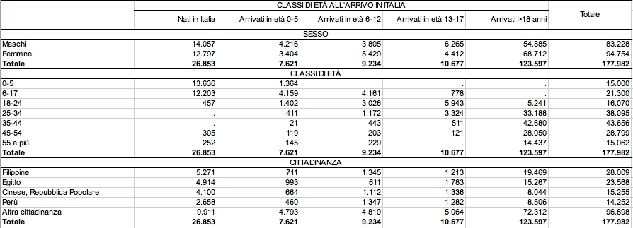 Dei quasi 178mila residenti, quelli arrivati in Italia in età adulta sono la maggioranza, 123mila dei quali 42.680 all’età di 35-44 anni. Quelli che sono nati in Italia sono 26.853.