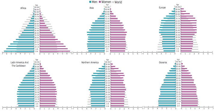I bambini saranno presenti in numero addirittura doppio rispetto all’Europa. Attualmente i residenti in Africa sono 1,2 miliardi circa che diventeranno 2,4 nel 2050. Per allora i bambini africani tra i 5 e i 9 anni saranno 207,9 milioni pari al 9,8% della popolazione mentre quelli europei saranno 37,2% pari ad appena il 4,1%.