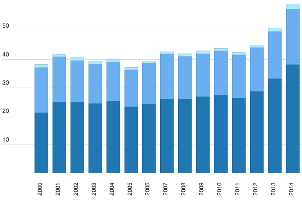 I dati si riferiscono al: 2000-2014