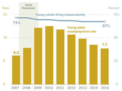 In termine di numeri assoluti nei primi quattro mesi del 2015 i Millennials indipendenti sono 42,2 milioni rispetto ai 42,7 del 2007.