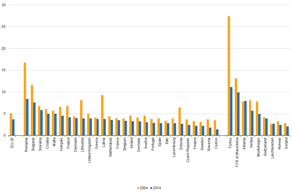 Nonostante questi progressi, però, alcuni Stati hanno ancora oggi un tasso di mortalità infantile piuttosto alto, per esempio la Romania con 8,4 morti ogni 1.000 nati vivi oppure la Bulgaria, dove entro il primo anno di vita muoiono in media 7,6 bambini su mille. Fuori dall’Europa a 28 le cose vanno peggio: in Turchia il dato peggiore, 11 decessi su mille nascite.