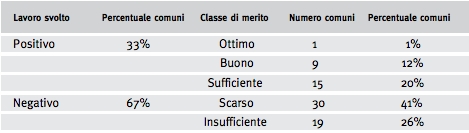 Un dettaglio importante: i risultati si riferiscono a 74 comuni della regione, non a tutti, perché molti non hanno risposto al questionario. In particolare questa tabella contiene il giudizio di Legambiente alle azioni delle amministrazioni locali tese a ridurre il rischio idrogeologico. Da tenere presente, inoltre, che sempre secondo Legambiente il 100% dei comuni calabresi contattati, sui 6.633 contattati in tutta Italia, sono a rischio idrogeologico.