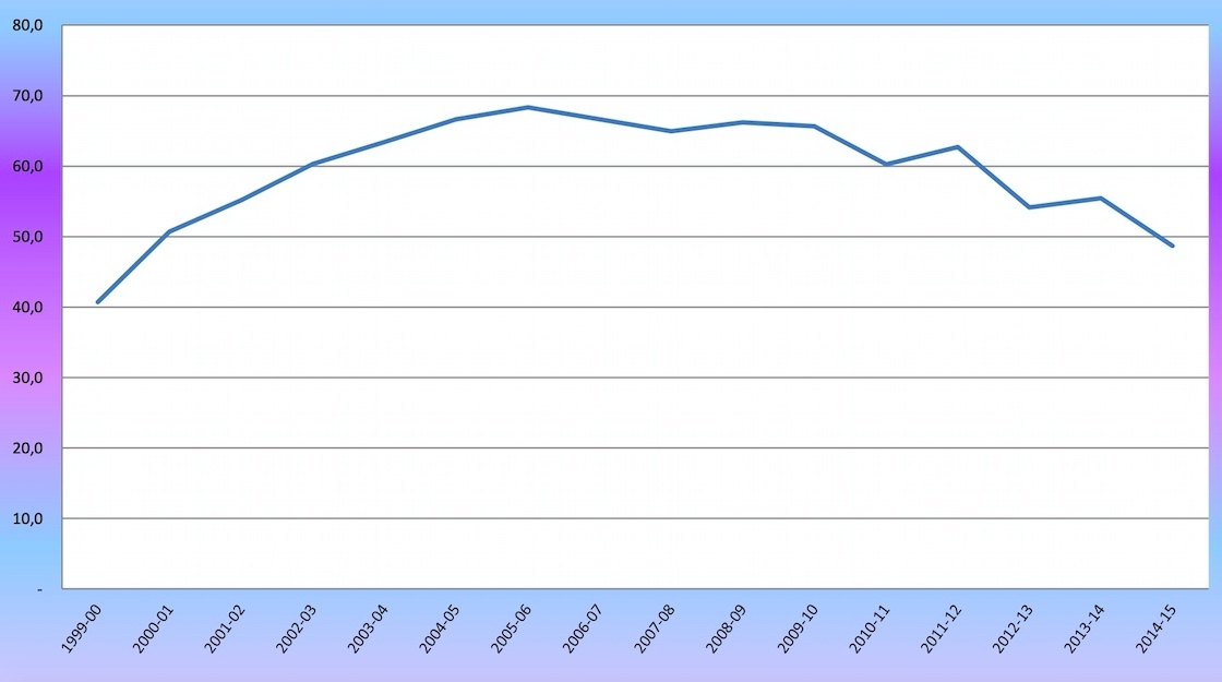 Dopo il boom di coperture fino al 68%, si sta tornando ai valori del 2000 attorno al 40%