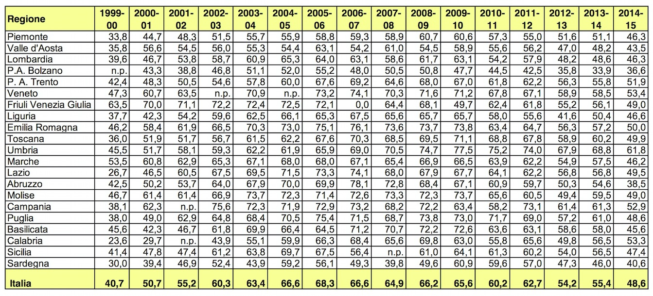 I dati si riferiscono al: 1999-2015